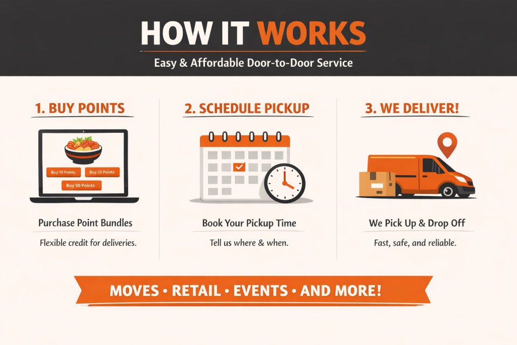 3. A driver will be dispatched on your scheduled delivery date to pick up your items and drop them off at the desired location.